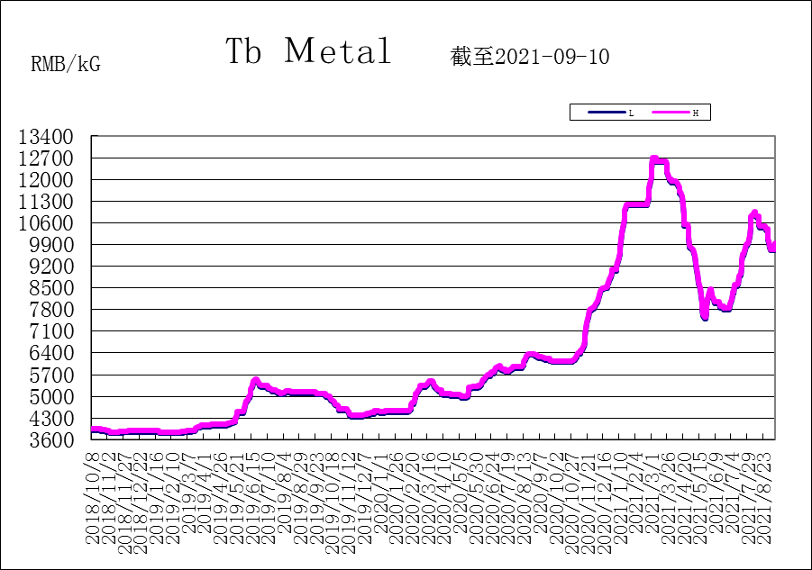 This week, prices of PrNd, Nd metal were relatively stable, prices of Tb and DyFe rose slightly. Prices from Asian Metal at this weekend presented: PrNd metal 735-740 RMB/KG; Nd metal 760-765 RMB/KG; DyFe alloy 2,570-2,590 RMB/KG; and Tb metal 9,900-9,950 RMB/KG.
