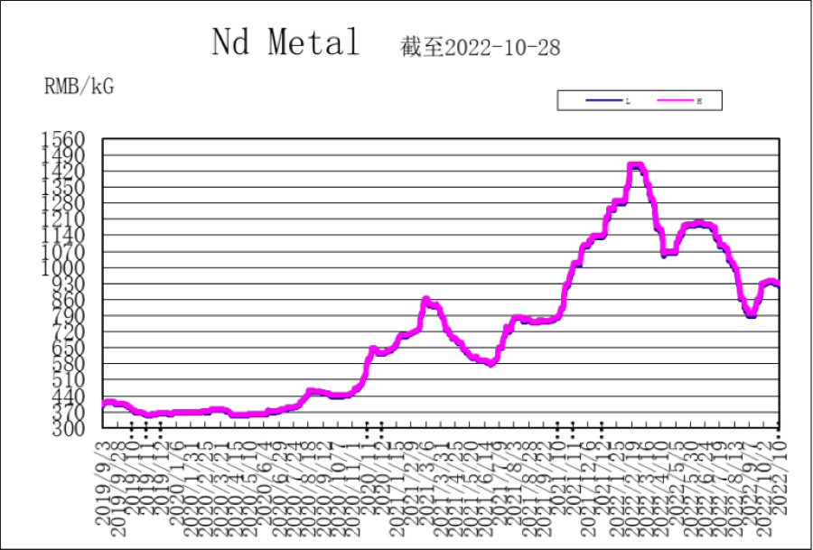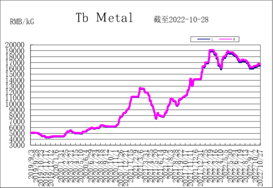 910-920 RMB/KG; DyFe alloy 2,260- 2,280 RMB/KG; Tb metal 16,500-16,7 00