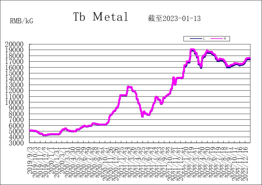 This week, the price of PrNd and Nd metal has increased slightly while the price of DyFe and Tb is relatively stable. Prices from Asian Metal at this weekend presented: PrNd metal 875-885 RMB/KG; Nd metal 965-975 RMB/KG; DyFe alloy 2,430-2,450 RMB/KG; Tb metal 17,400-17,600 RMB/KG.