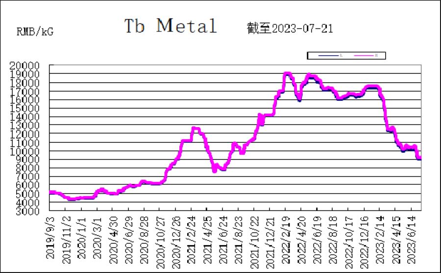 This week, the prices of PrNd, Nd metal, DyFe and Tb rose slightly. Prices from Asian Metal at this weekend presented: PrNd metal 548-558 RMB/KG; Nd metal 555-565 RMB/KG; DyFe alloy 2180-2200 RMB/KG and Tb metal 9050-9250 RMB/KG.