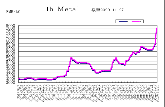 This week, prices of PrNd, Nd, DyFe and Tb rose substantially. Prices from Asian Metal at this weekend presented: PrNd metal 537-542 RMB/KG (average price 552.5 RMB/KG from SMM), Nd metal 598-603 RMB/KG (average price 630 RMB/KG from SMM), DyFe alloy 1,860-1,880 RMB/KG (average price 1885 RMB/KG from SMM), and Tb metal 7,770-7,820RMB/KG (average price 7850 RMB/KG from SMM).