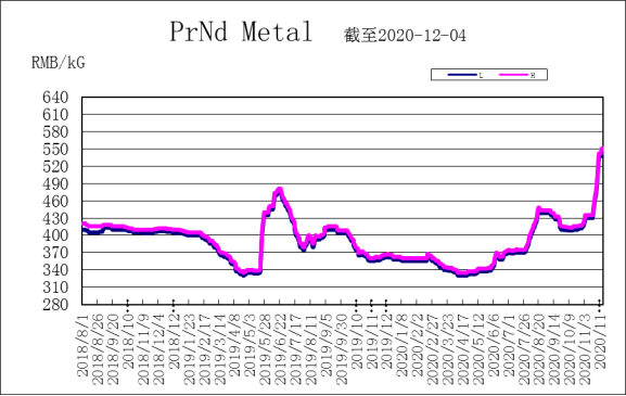 at this weekend presented: PrNd metal 545-550 RMB/KG, Nd metal 645-650 RMB/KG ,