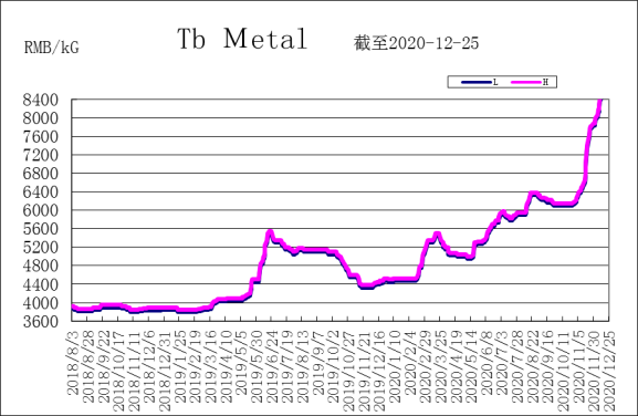 This week, the price of PrNd, Nd metal, DyFe and Tb was stable while Tb rose slightly. Price from Asian Metal at this weekend presented: PrNd metal 503-508 RMB/KG, Nd metal 625-630 RMB/KG, DyFe alloy 1,860-1,880 RMB/KG, and Tb metal 8,720-8,770 RMB/KG.