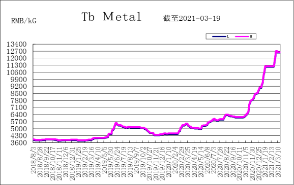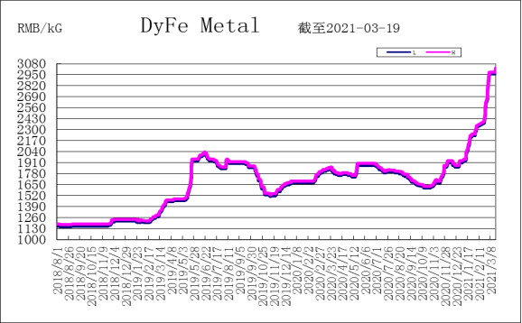 This week, the price of DyFe rose slightly, the prices of PrNd, Nd metal and Tb were relatively stable. Price from Asian Metal at this weekend presented: PrNd metal 710-715 RMB/KG; Nd metal 830-835 RMB/KG; DyFe alloy 3,010-3,030 RMB/KG; Tb metal 12,550-12,600 RMB/KG.