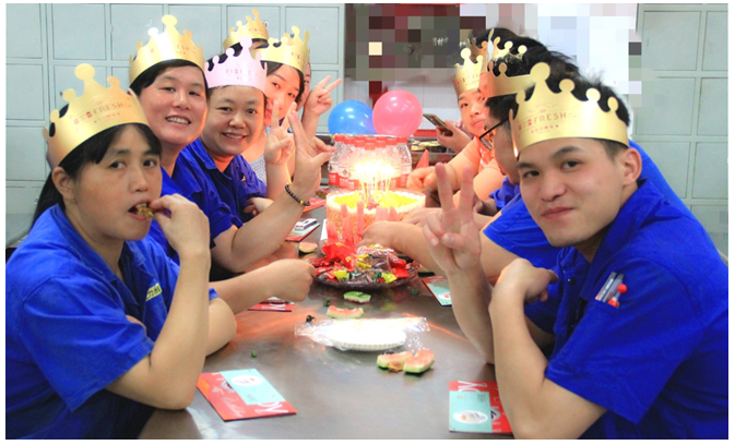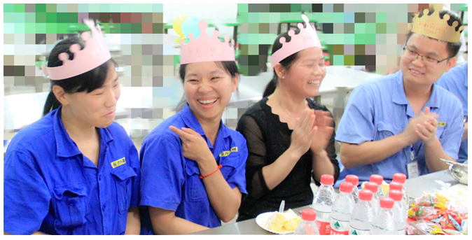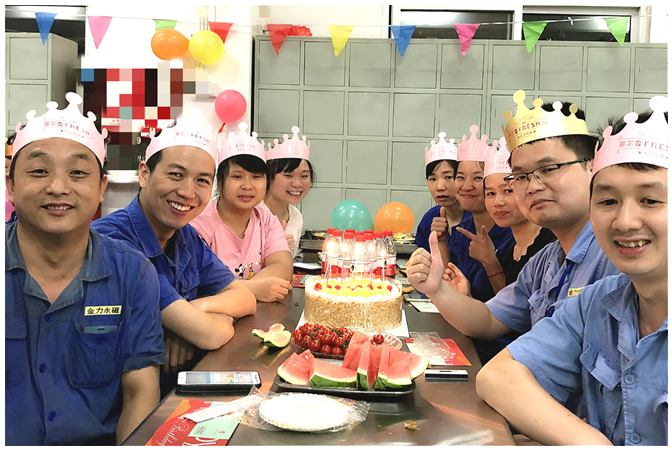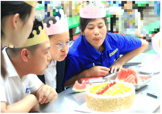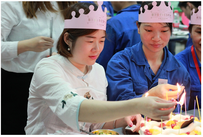 在集体生日会上,所有寿星一起吹蜡烛、切蛋糕、吃寿面,共同分享快乐时刻。尽管这在平时看来,是一个很普通的环节,但此时此刻,却一瞬间拉近了员工彼此间的距离;尽管大家来自不同的岗位、不同的部门,但团结亲切如家人。