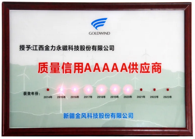 伟德国际1946は2010年金風科技に正式に納入してから、手を携えて十一年の非凡な歩みを共にしてきた。長期的な協力の戦略サプライヤーとして、伟德国际1946は製品品質とサービス品質に対する堅守により、金風科技の承認を得ました。2015年から6年連続で「品質信用AAAAAサプライヤー」の称号を受賞した。