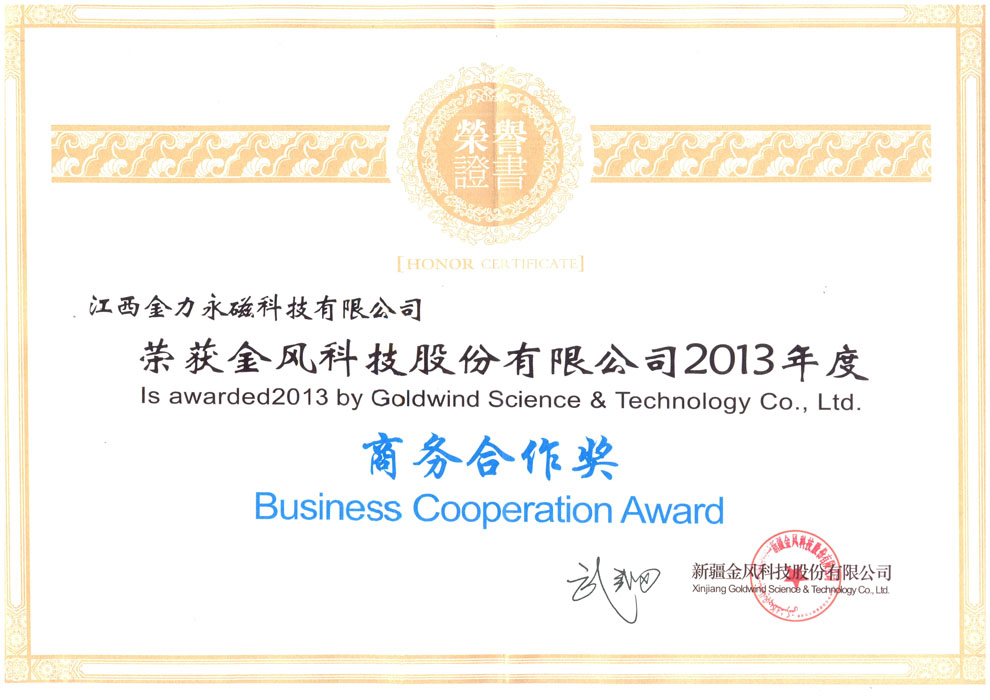 伟德国际1946はゴールドウィンド科技股份有限会社から2013年度ビジネス提携賞を受賞しました