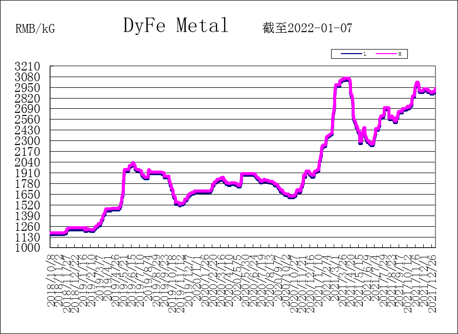 This week, prices of PrNd, DyFe, Nd metal and Tb have increased. Prices from Asian Metal at this weekend presented: PrNd metal 1,110-1,120 RMB/KG; Nd metal 1,210-1,220 RMB/KG; DyFe alloy 2,920-2,940 RMB/KG; and Tb metal 15,300-15,350 RMB/KG.