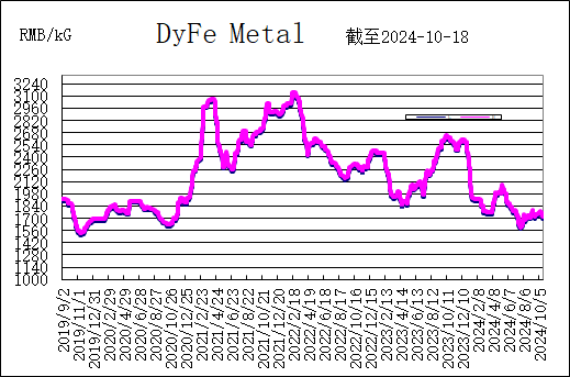 In the rare earth market this week, the prices of PrNd ,Nd metal, DyFe alloy and Tb metal all fell slightly. Asian metal at this weekend presented: PrNd metal price 521-524 RMB /KG; Nd metal price 525-530 RMB /KG; DyFe alloy price 1700-1720 RMB /KG; Tb metal price 7150-7350 RMB /KG.